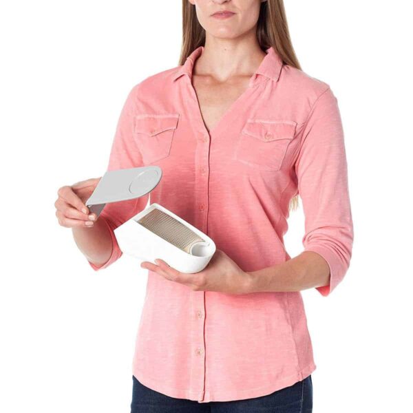 – a detachable stainless steel grater, allowing to grater directly over your food or into so container for storage
