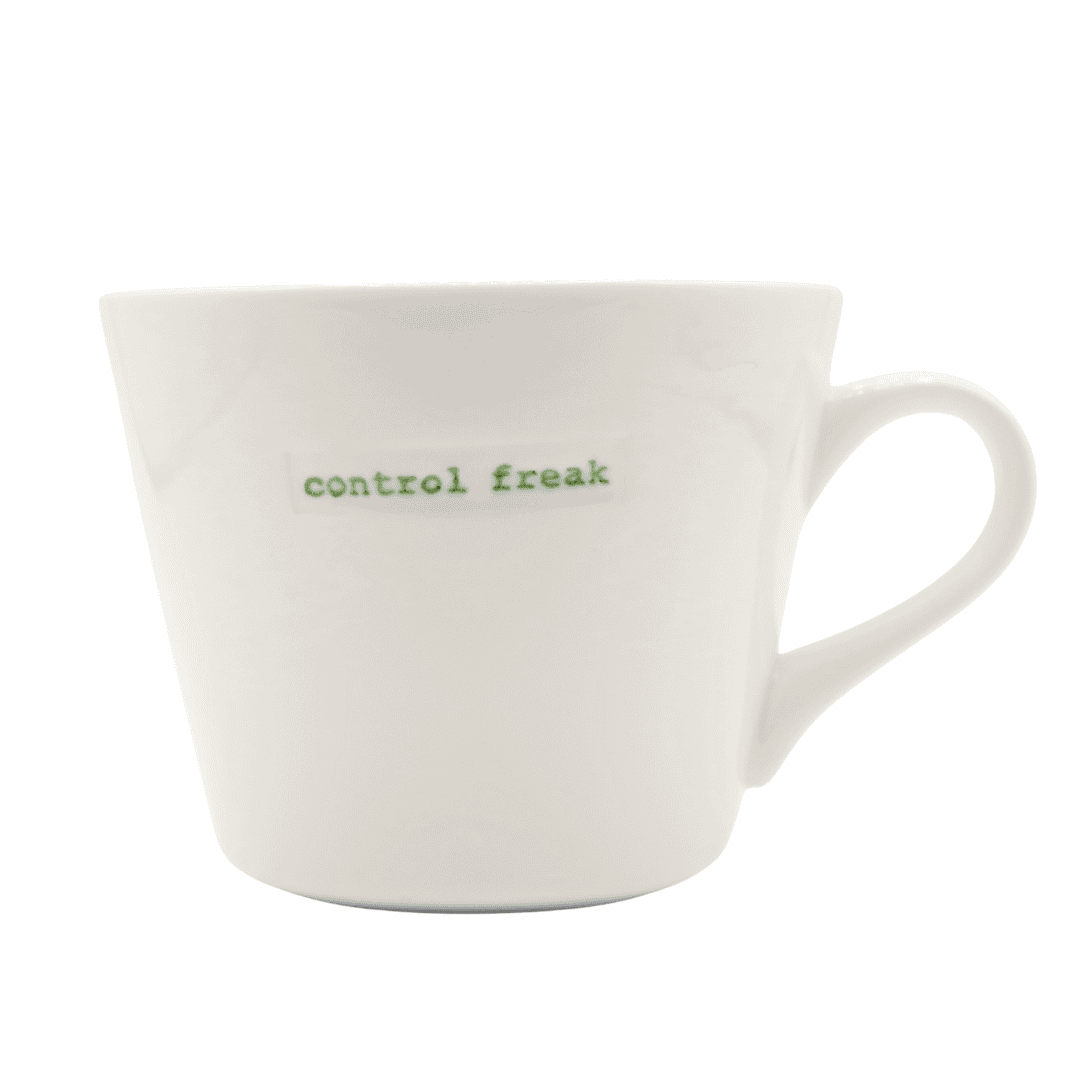 This cheeky “control freak” mug is great for coffee, tea or cocoa, and brings a bit of personality to your mug rack.