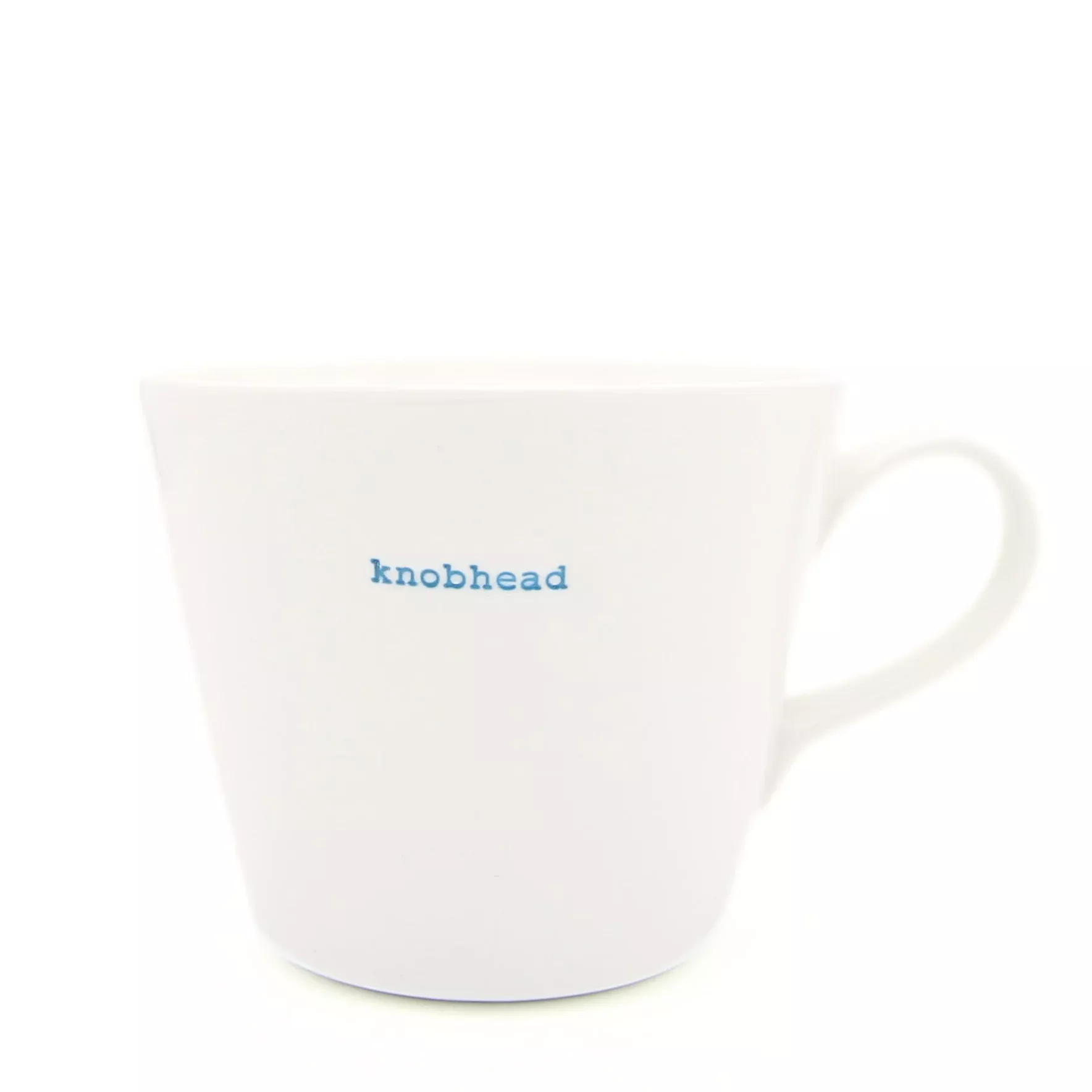 Crafted in super-white porcelain, it sports a hand-stamped “Knobhead” in retro blue typewriter font for a bold statement.