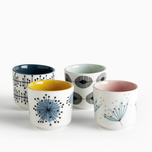 These egg holders feature bold motifs and colours, mid-century inspired, perfect to brighten up your kitchen