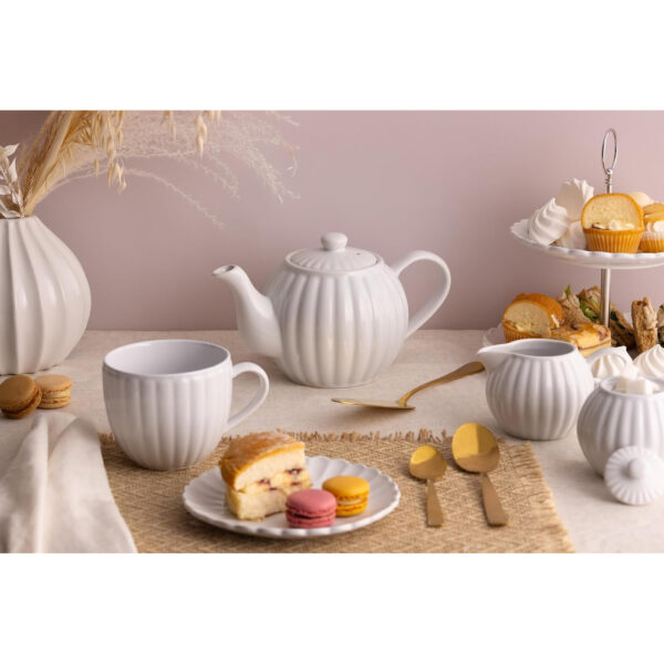 Crafted from fine glazed stoneware, the fluted detailing adds texture while maintaining a glossy white finish.