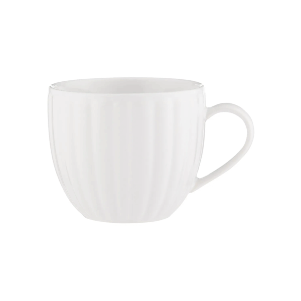 Crafted from durable stoneware, this 460ml mug features a delicate fluted design and a soft white gloss finish, making it both stylish and practical for everyday use.