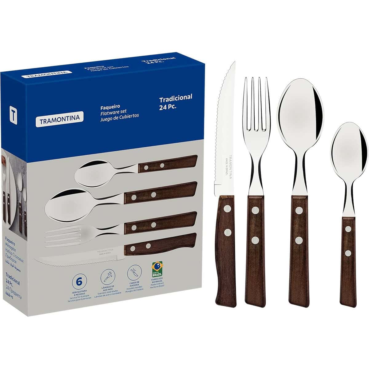 Tramontina 24 Piece Cutlery Set – Stainless Steel/Wood Cutleries