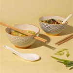 – Set Includes: 2 ceramic bowls, 2 bamboo chopsticks, and 2 traditional soup spoons