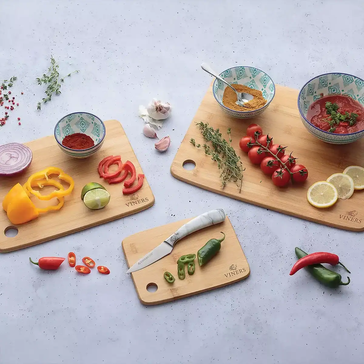 Upgrade your food-preparation routine with this Viners set of three bamboo chopping boards.